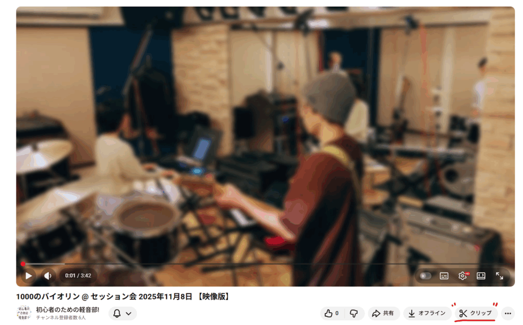 本来の趣旨とはちょっと異なるのですが、これが楽器の練習にとっても便利なんです。練習したい部分をクリップにするだけで、その部分だけを繰り返し練習することができるのです。しかも、このクリップという形式で作成された動画は、自動的に繰り返し再生されるのがデフォルトになっています。実際にみていただくとわかりやすいと思いますので、実際に自分が作成したトゲナシトゲトゲアリさんの「雑踏、僕らの街」のサビ部分だけを切り取ったクリップをご紹介いたします。通常の YouTube 動画のように埋め込むことができなかったので、リンクをクリックして遷移先での閲覧となります。